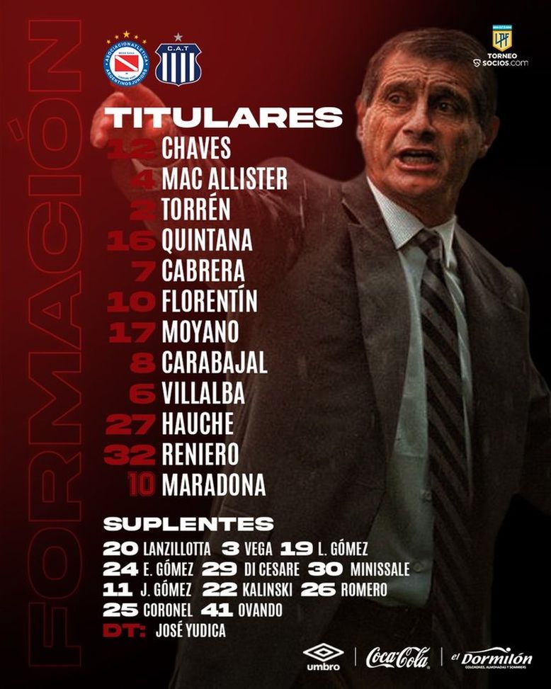 Ma la cosa che ha colpito tutti sui social è stata la formazione iniziale postata sui social. L'Argentinos Juniors, il club in cui si è consacrato Diego Armando Maradona, ha pubblicato i nomi di...12 giocatori. Il dodicesimo era...10 Maradona!