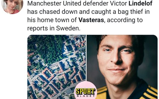Il difensore del Manchester United ha fermato la rapina di un borseggiatore. Una grande corsa la sua, per raggiungere e trattenere il ladro fino all'arrivo della polizia. "La polizia desidera ringraziare il testimone per un intervento rapido e sensato", ha affermato in un comunicato l'Autorità di Polizia di Västerås. L'incidente è avvenuto intorno alle 10.30 di ieri. Lindelöf, che attualmente si sta godendo le vacanze nella città natale di Västerås insieme alla moglie Maja, è intervenuto quando un ladro ha strappato una borsa a una donna anziana di 90 anni. Secondo le fonti, la donna teneva la borsa nel girello.