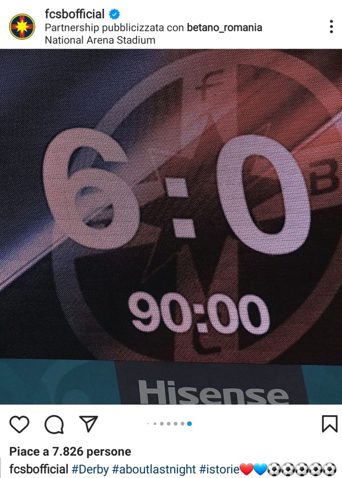 FCSB-Dinamo 6-0: l'atmosfera alla National Arena è stata quella di un derby, alla presenza di oltre 25.000 persone, e lo spettacolo realizzato da FCSB sullo stadio più grande del Paese è stato sintetizzato da Mihai Stoica dopo il fischio finale dell'arbitro Istvan Kovacs. Il dirigente della FCSB, la squadra che anche se gli irriducibili della Steaua non sono d'accordo è la continuazione post-fallimento proprio della Steaua Bucarest, non ha perso l'occasione per lanciare un messaggio ai rivali. Il ds è stato ripreso dalle telecamere presenti allo stadio, sul campo, mentre teneva in mano due teli, uno blu e uno rosso.