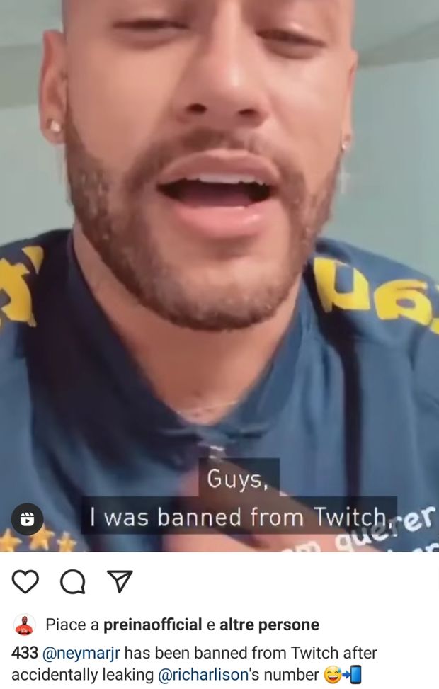 Neymar, che fai? Bannato su Twitch per aver reso pubblico il numero di Richarlison!