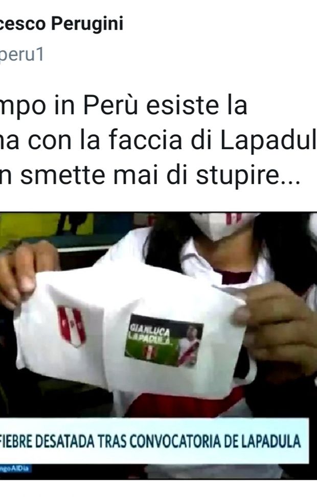 Per non farsi mancare nulla ci sono anche le mascherine in Perù, in questi giorni, con il volto dello stesso Lapadula. Insomma, inseguendo il Lapa-gol, in Perù è vera e propria Lapa-mania.