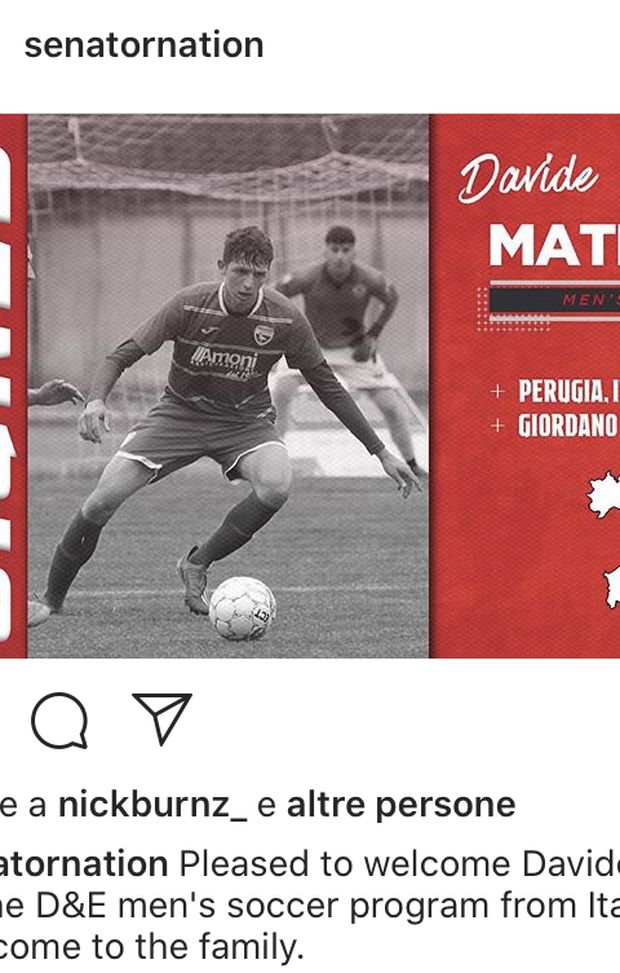 Davide Materazzi, secondo figlio del campione del mondo, decide di andare oltre oceano per giocare e studiare nella famiglia del Davis & Elkins College. Il 18enne si stabilisce a Elkins, piccolo comune degli Stati Uniti d’America situato nella contea di Randolph in Virginia Occidentale.