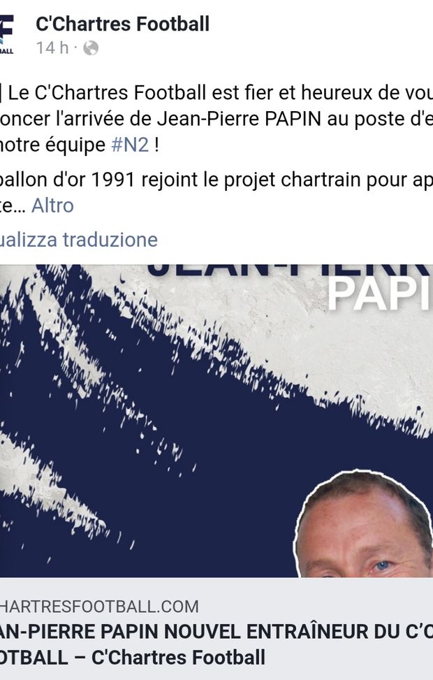Jean-Pierre Papin, attaccante x Marsiglia, Milan e Bayern e vincitore del Pallone d'Oro nel 1991, torna a fare l'allenatore: ripartirà dalla serie D francese, dalla National 2, dove guiderà il C'Chartres. L'annuncio è stato dato dal club che lo ha ingaggiato al posto di Jean-Guy Walemme. Il 56enne ex attaccante era inattivo da dieci anni Il suo ultimo incarico di tecnico risaliva al 2010 allo Chateauroux. In precedenza aveva guidato Strasburgo e Lens. Negli ultimi anni ha lavorato come opinionista per l'emittente BeIN Sports e si è dedicato alla sua fondazione per i bambini cerebrolesi.