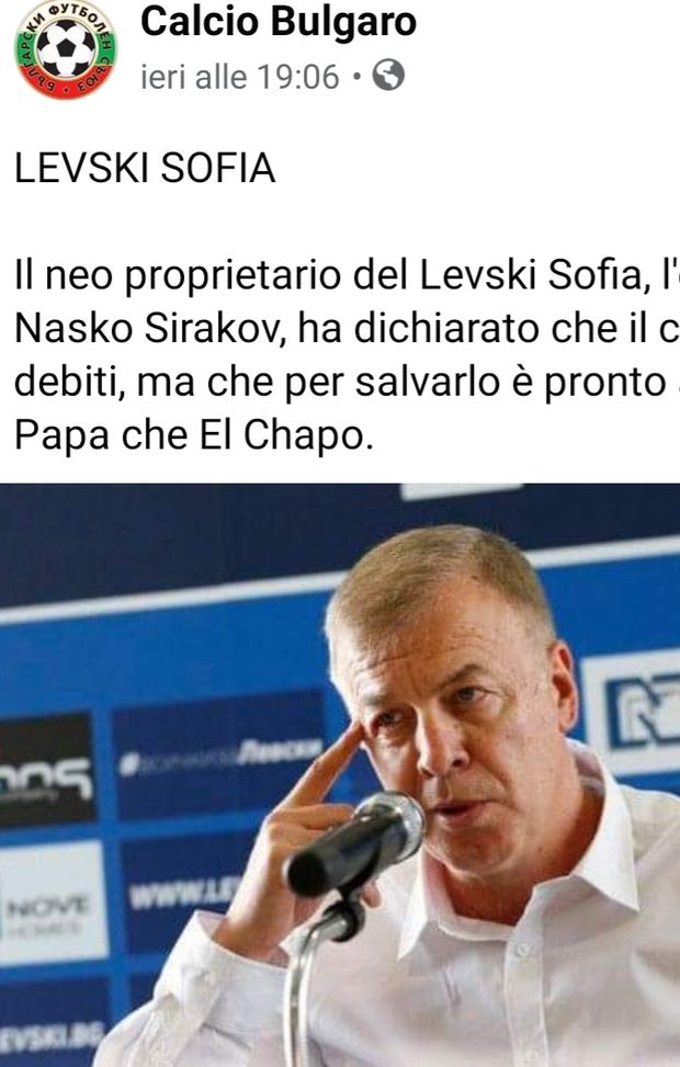 Il Levski Sofia è in grave crisi economica ormai da tempo. Il suo neo proprietario del è Nasko Sirakov, autore del gol del pareggio nella gara inaugurale dei Mondiali 1986 in Messico: Italia-Bulgaria 1-1. Sirakov è anche il top bomber di tutti i tempi della storia del Levski.