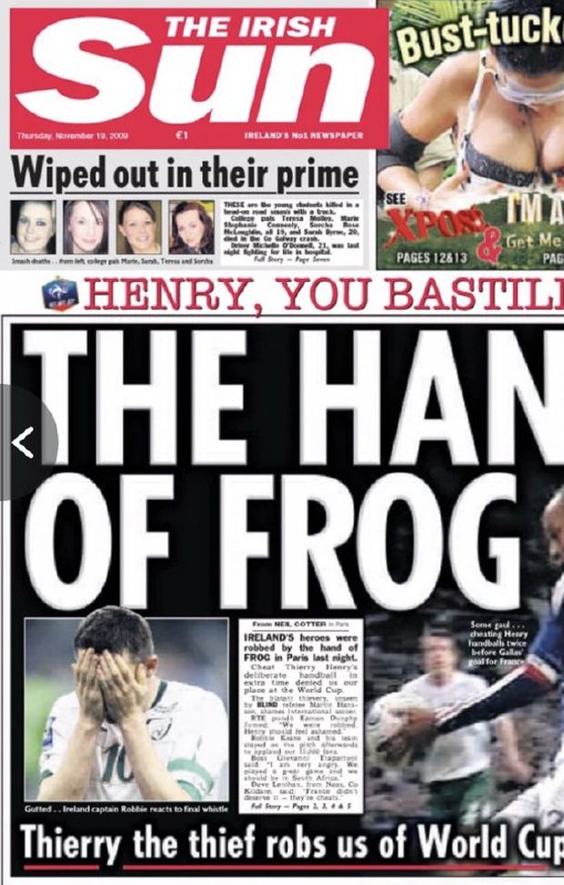 Il 18 novembre 2009 la Francia ha lasciato l’Irlanda fuori dai Mondiali 2010 grazie ad una mano decisiva di Thierry Henry in area di rigore, non sanzionata come infrazione, che provocò il disprezzo incondizionato della nazionale verde, al tempo allenata da Giovanni Trapattoni. Una volta passate le polemiche e gli anni, la star francese ha adesso rivelato di aver avuto addirittura bisogno delle guardie del corpo per garantire la sicurezza sua e della famiglia dopo aver ricevuto infinite minacce di morte.