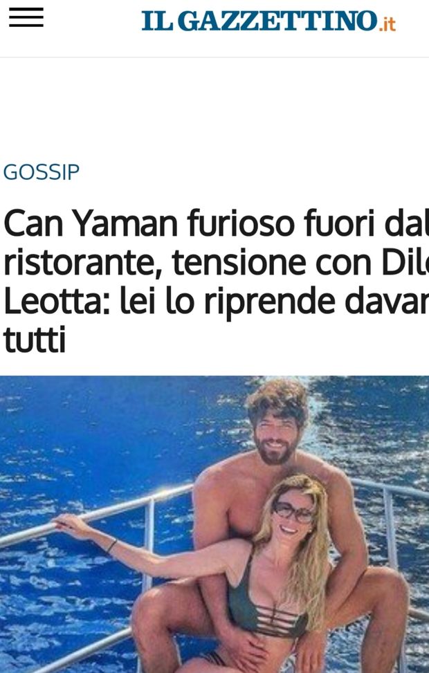 361 Magazine ha raccontato che i giornalisti e fotografi sono rimasti in attesa di Yaman e Diletta fino al termine della cena, ma al momento dell'uscita dal locale, lo stesso Can ha avuto una reazione nervosa, arrivando anche a strattonare la mano di Diletta per accelerare il passo. Sembra che l'atteggiamento della Leotta sia stato diverso: prima un sorriso e poi l'invito a non strattonarla e a darsi una calmata. La sensazione è che Diletta avrebbe gradito da parte del compagno anche una risposta a qualche domanda dei media, ma lui non ne ha voluto sapere.